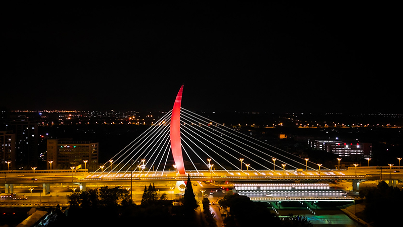 包公大道主跨152m跨越店埠河獨(dú)塔單索面斜拉橋(寓意:包公故里、日月同輝)